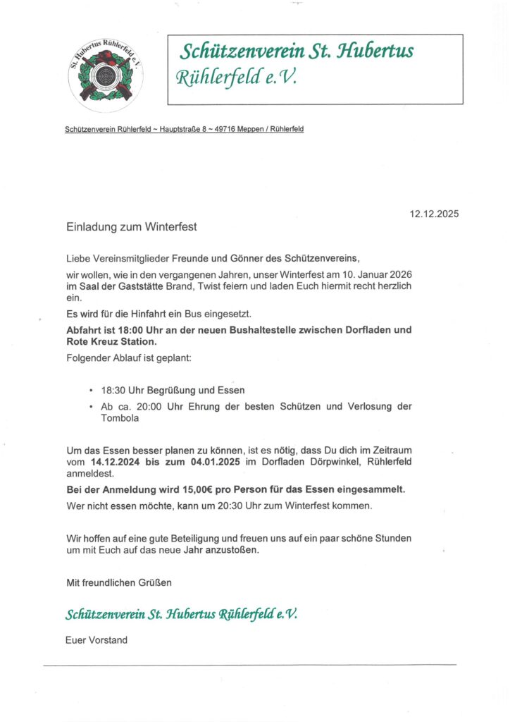 Wir haben, wie die letzten Jahre auch, eine Einladung zum Schützenfest erhalten.